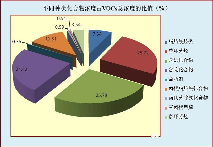 對(duì)不同種類VOCs的濃度分析發(fā)現(xiàn),單環(huán)芳烴(25.72%)、含氧化...